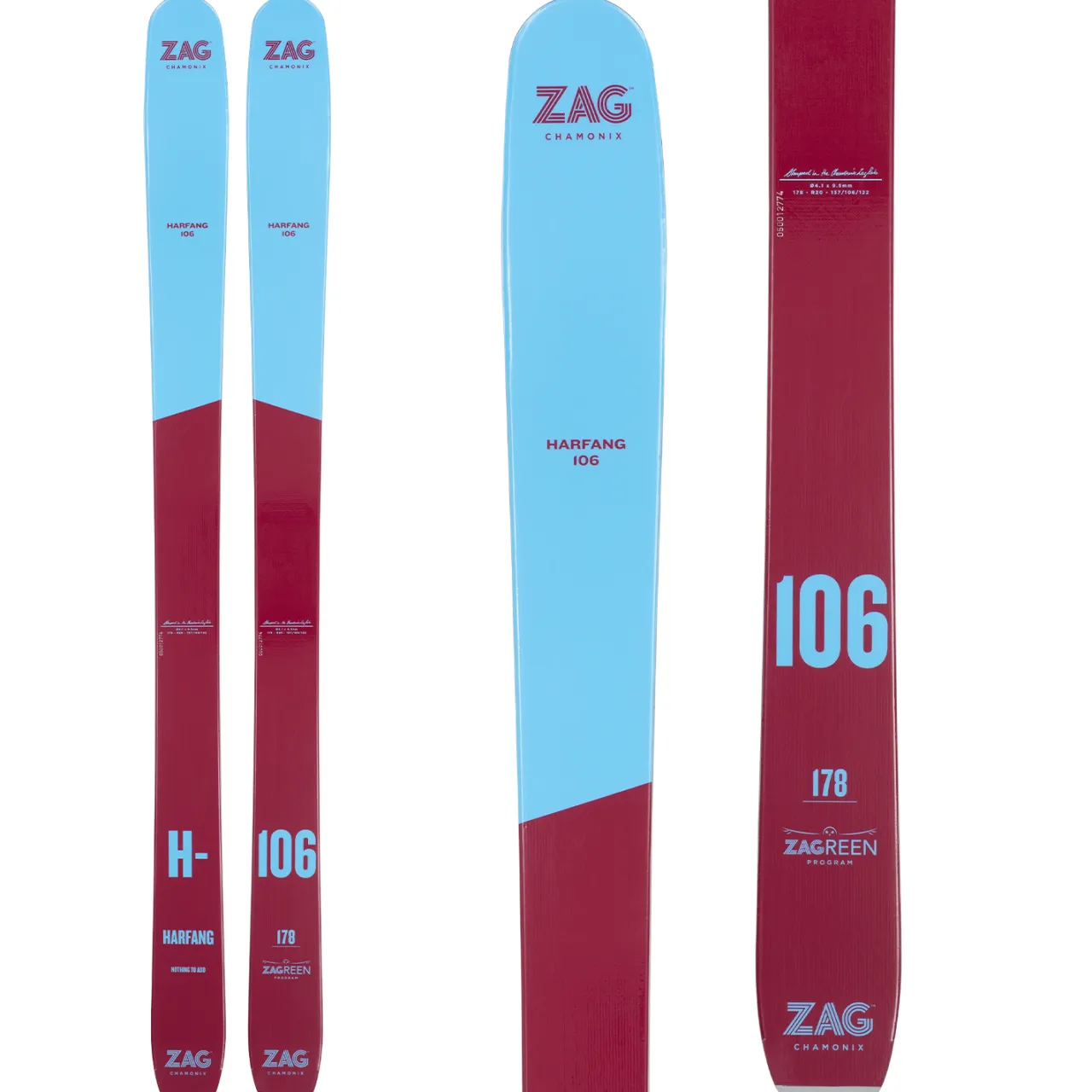 The ZAG H-106 Skis are their number 1 pick for a day of typical freeriding around Mt. Blanc. There might be some pow, there might be some ice, it’s a given that there’ll be some burly terrain and a few no fall zones. The ski the ZAG crew feels handles it all the best is the H-106. Loaded for big games, the 106 gets the “Heavy Duty” construction, full Poplar wood core, and double glass multiaxial laminate construction, all adding up to a phenomenal performer you can count on when things get spicy.