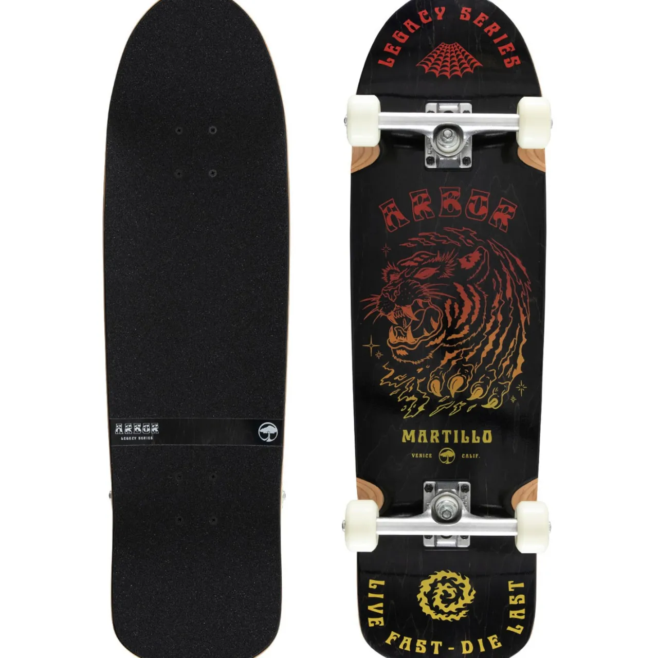 The Arbor Legacy Martillo Spellbound Cruiser Complete has a wide platform, blunt nose, and Whisky formula wheels, making riding on rough surfaces a no-brainer. For up-and-coming riders who crave stability and flexibility while learning the ropes, the Martillo Spellbound Cruiser is a great choice.