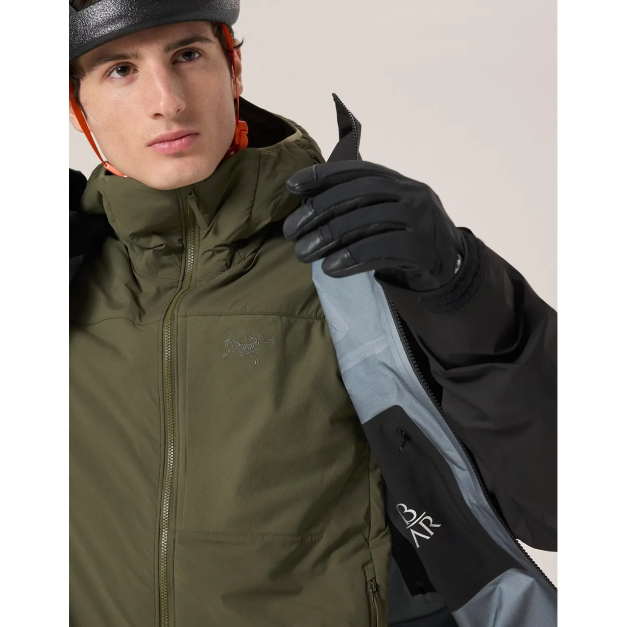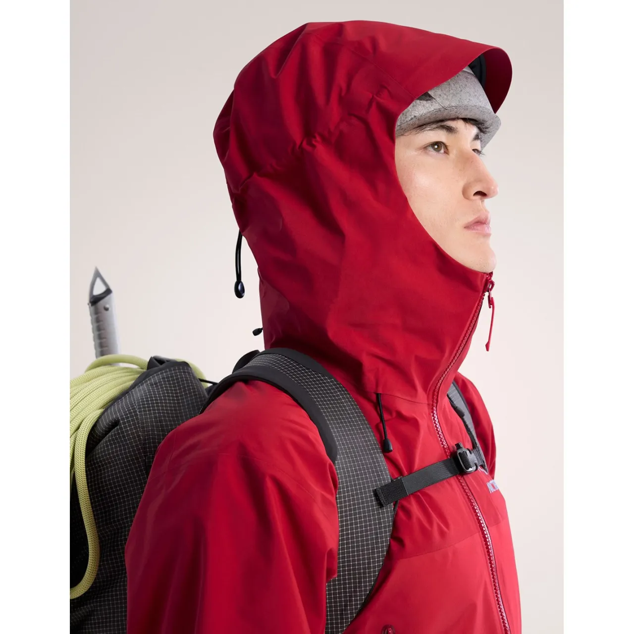 Helmet Compatible StormHood™–        Designed for full weather protection. The StormHood™ can be cinched with one-handed drawcords, allowing it to rotate with the head without obscuring vision when turning from side to side. Front zipper height varies according to the intended use; protects chin and neck from wind, snow, and rain.