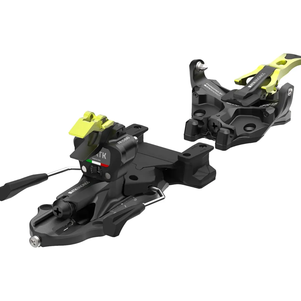 The latest and greatest from cult binding maker ATK is, indeed, pretty great. The ATK Freeraider 15 Evo Alpine Touring Ski Bindings remedy some minor issues with previous versions and keep ATK way out ahead in the light but bomber tech binding world. The Evo series bindings feature an automatically locking ski brake (the old push-button one could be balky at times) and the new U.H.V® (Uphill Hardness Variator) that allows adjustment of the toepiece jaw retention. A slightly revised toepiece makes lining up and stepping into the toe easier than ever, making an already easy step-in action even smoother.