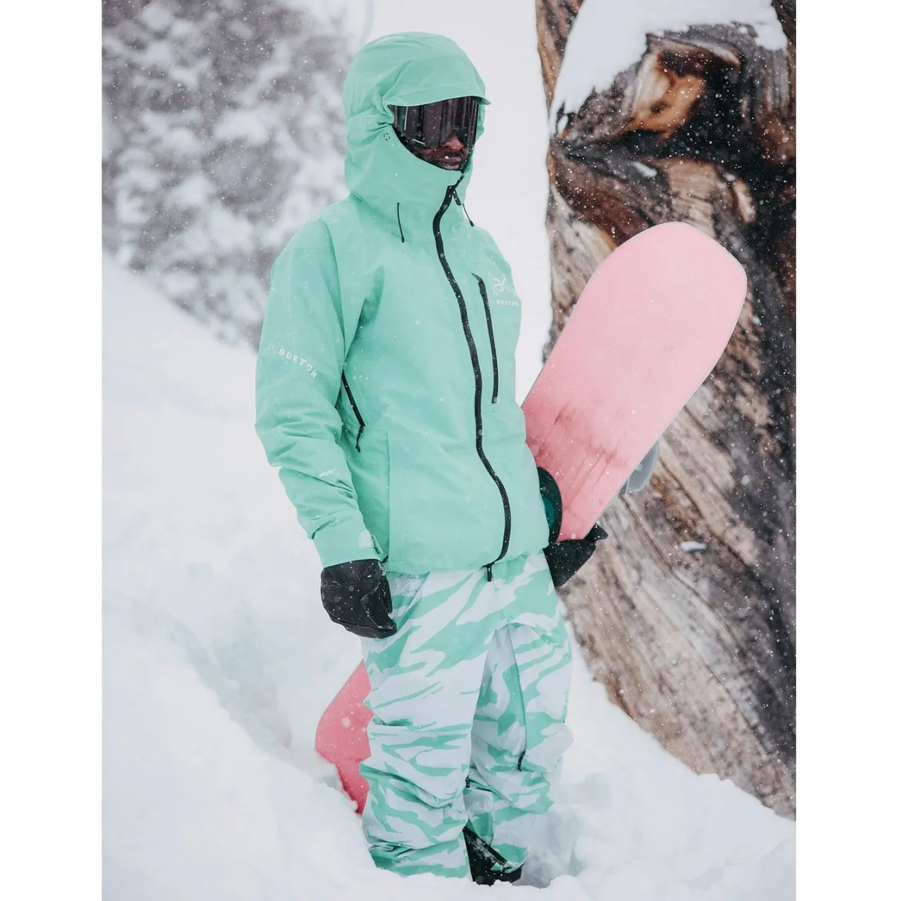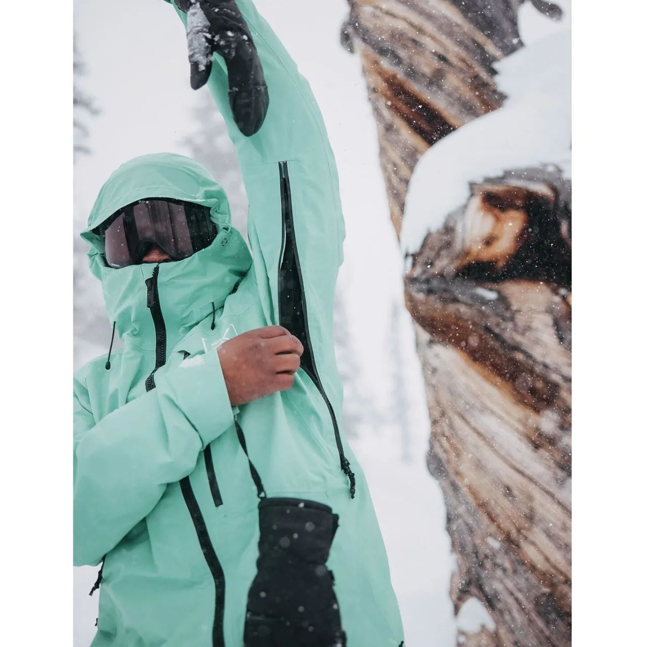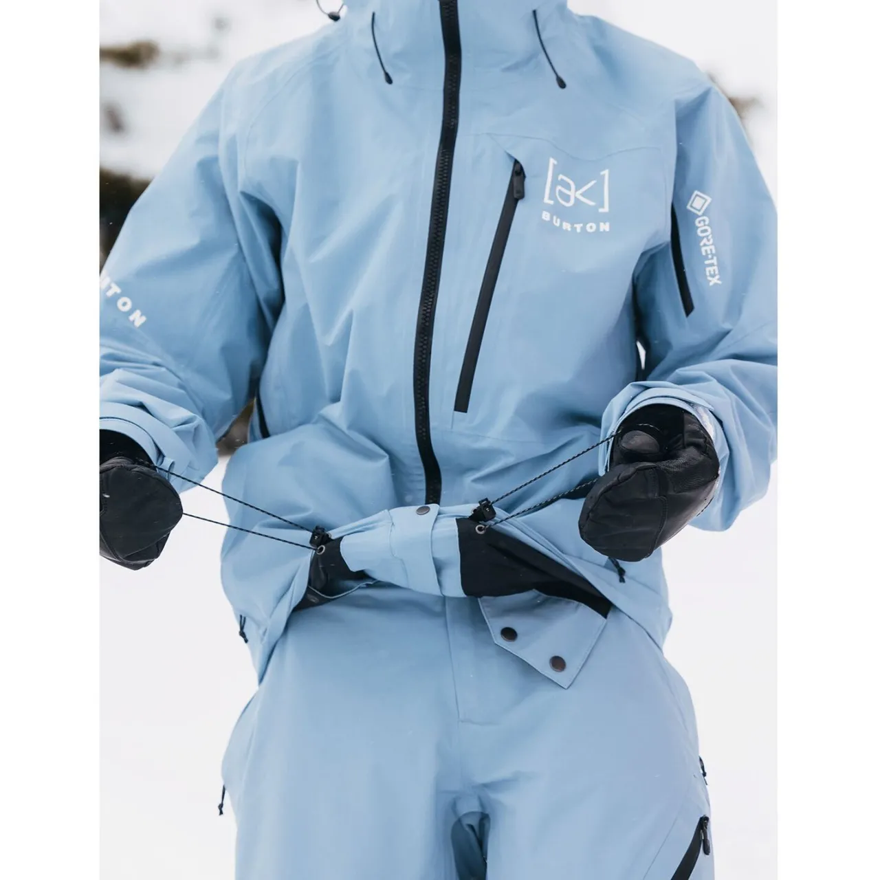 Ergonomic Water-Repellent Zip-Out Stretch Waist Gaiter with Jacket to Pant Interface–        Engineered for the movements of snowboarding, this ergonomic waist gaiter seals out snow and cold like never before, and is removable for customizing performance. The longer back creates an ergonomic fit, articulating with your body for an interface that stays locked in all day long.