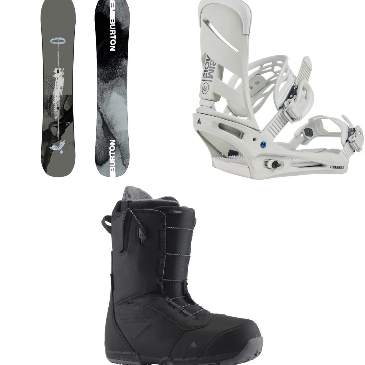 Burton Instigator Flat Top Snowboard + Mission Snowboard Bindings + Ruler Snowboard Boots 2025- Snowboards, Bindings & Boots|Snowboard Packages