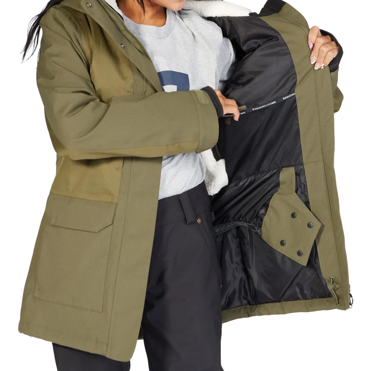 See the world in your DC Panoramic Parka, a two layer snowboarding jacket with a fuzzy hood and defense against the weather. Insulation keeps you warm while 15k waterproofing means you can still get out there when it starts to snow. Made with zippered handwarmer pockets, mesh lined vents, and a jacket-to-pant connect system, the slopes never looked so good.