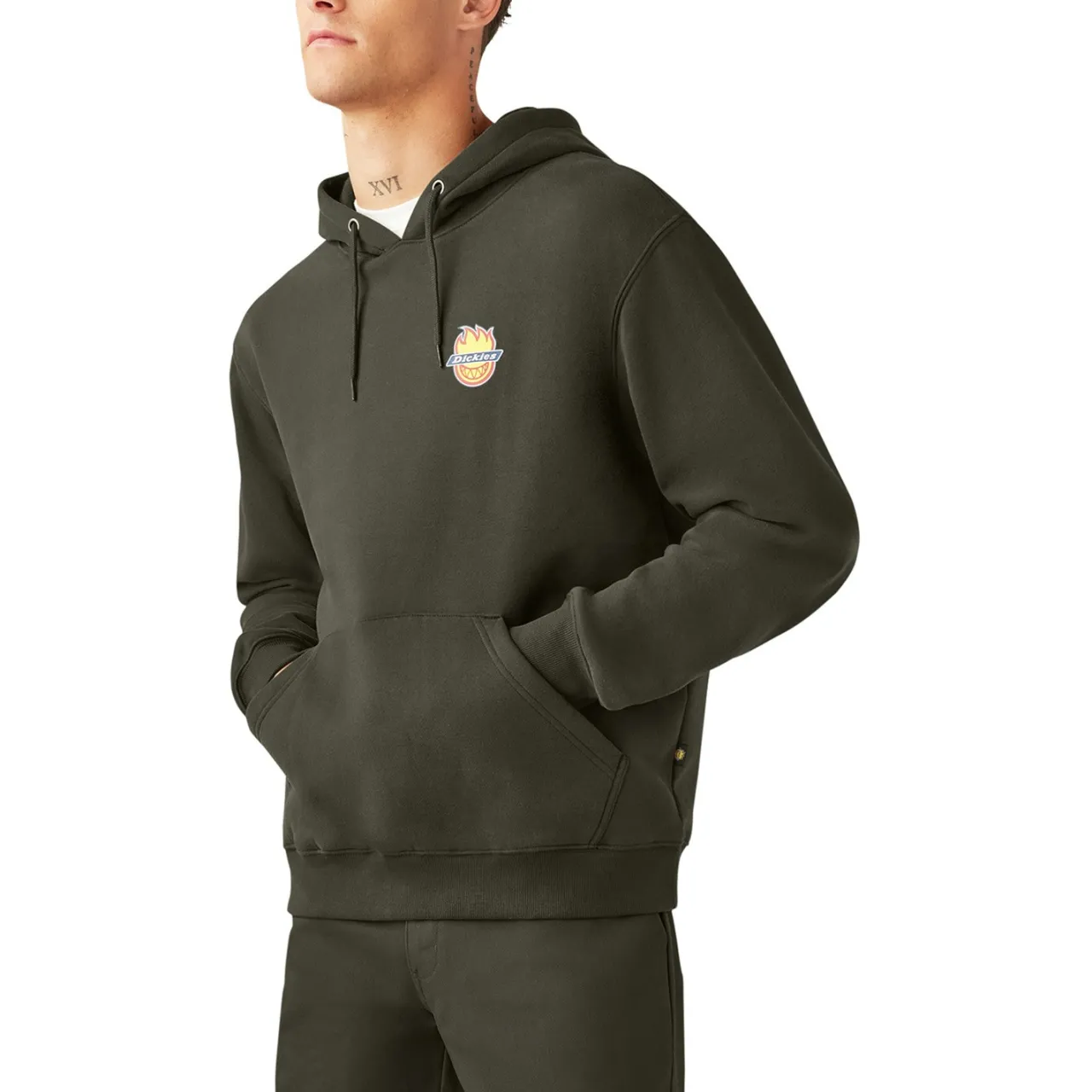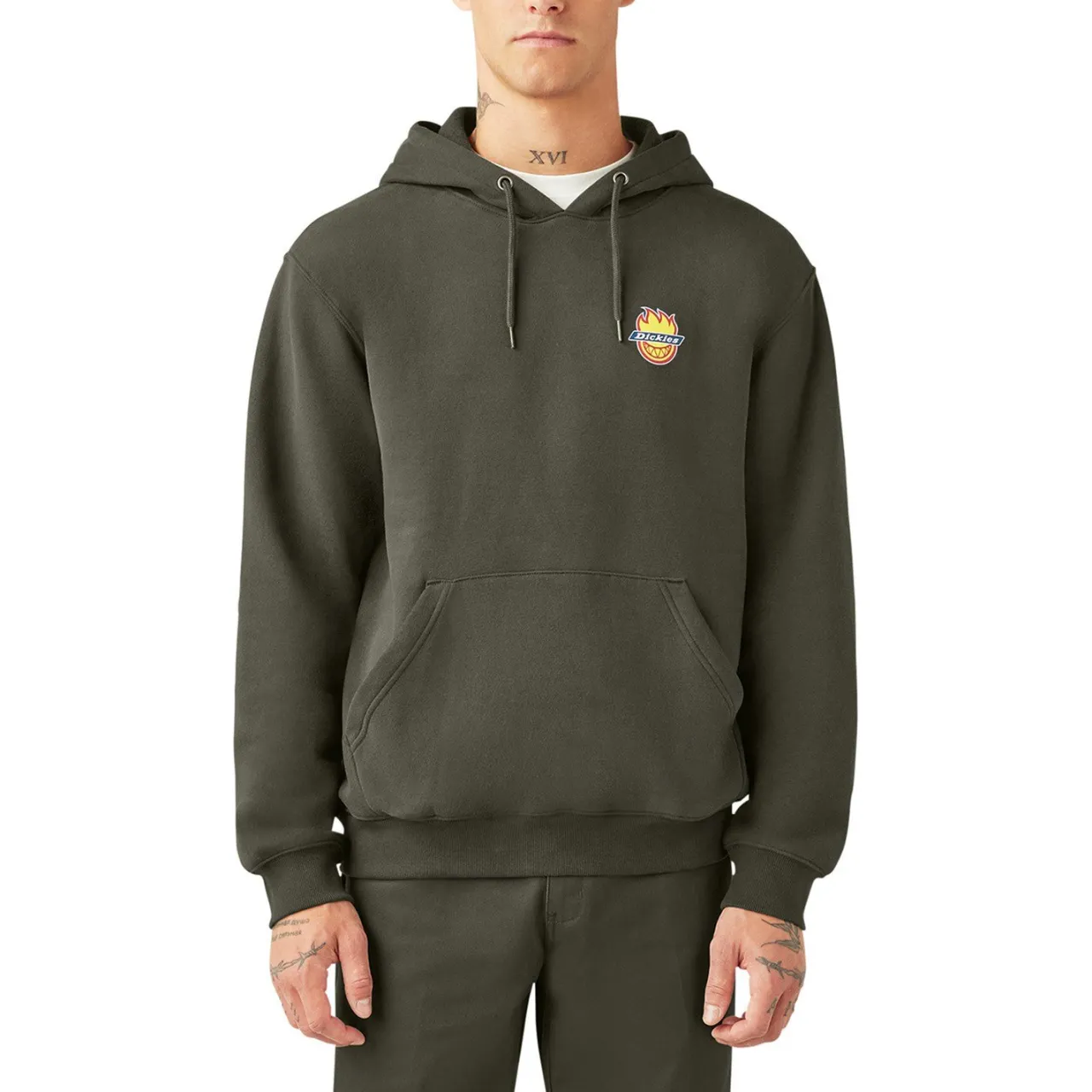 The Dickies X Spitfire Hoodie merges workwear’s most trusted name with skateboarding’s most fiery icon for a cozy classic that’s anything but basic. This relaxed-fit rebel wraps you in cotton-blend warmth while flexing co-branded graphics front and back – perfect for those long sessions when the spot’s too good to quit.