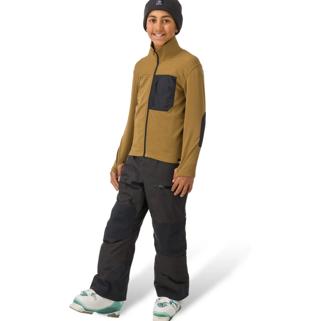 The Flylow Huck Fleece is designed for mountain-loving kids who want to stay warm and dry on all of their outdoor adventures. Made with our breathable, cozy Furano Fleece in a gridded pattern, this versatile midlayer is perfect for all ski levels and is comfy enough for après-ski activities.