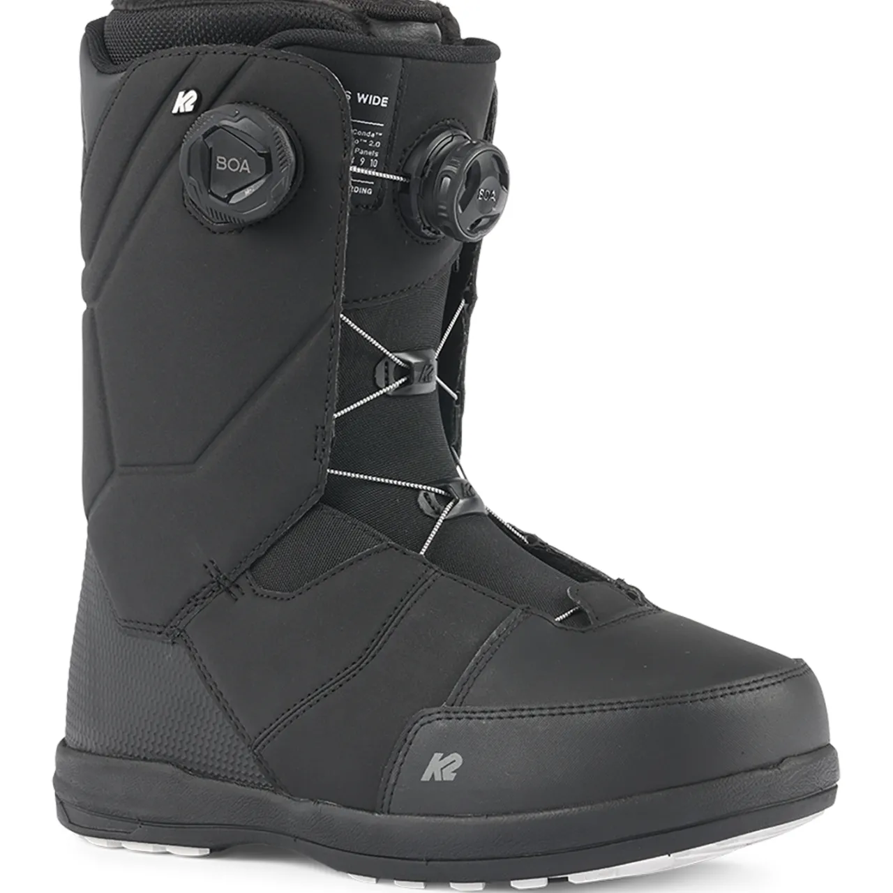 Boa® Conda™ Liner Lacing– A patented K2 liner lacing system that uses a urethane harness to gently hug your ankle, creating unrivaled heel hold. Boa® Conda™ allows for adjusting liner tightness and heel hold on the fly from outside of the boot, even with gloves on.