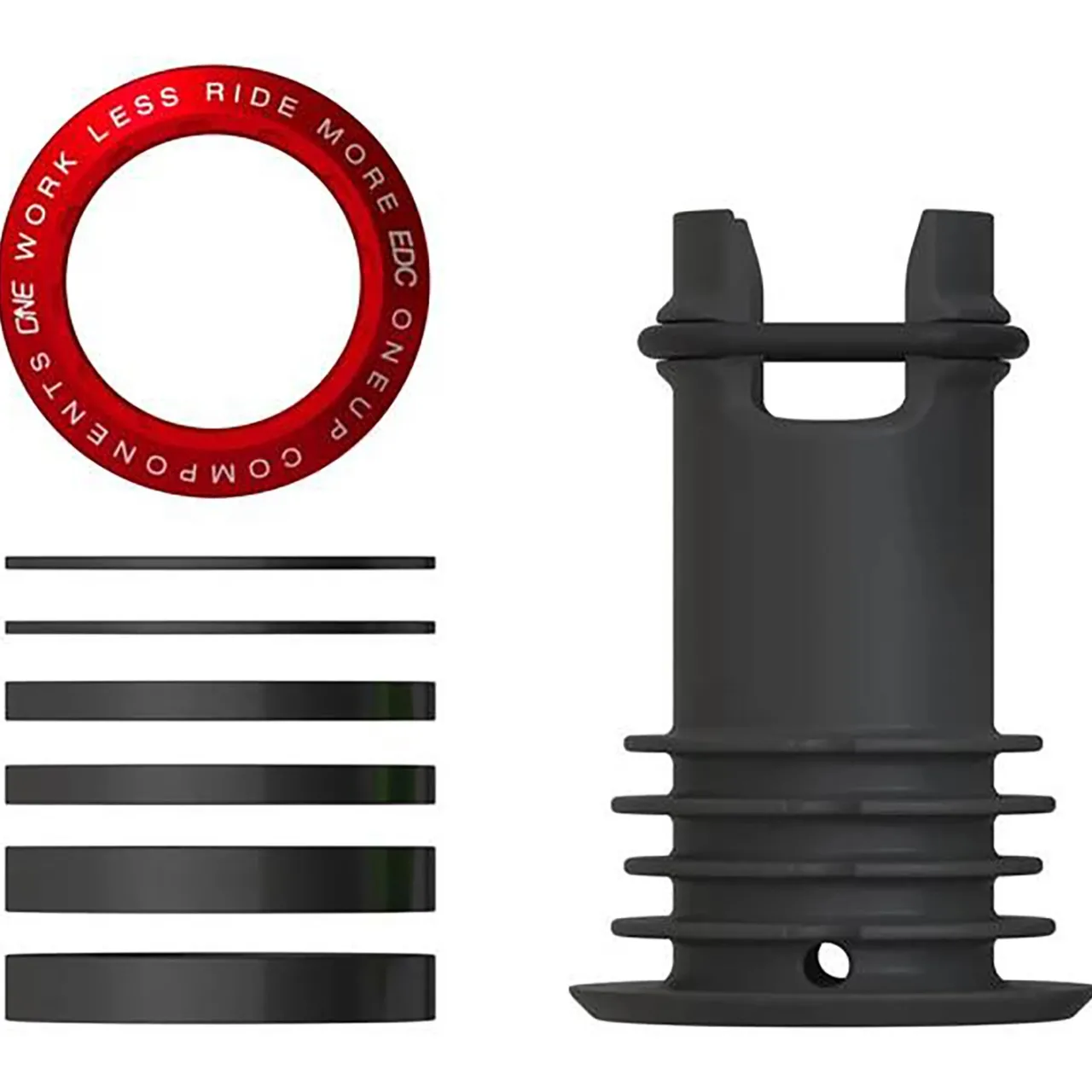 At 4.2 grams, the OneUp Components EDC Top Cap is the lightest available top cap and a necessary component of the OneUp EDC (Every Day Carry) storage system which allows you to store essential bike tools inside the steerer tube of your fork. The Top Cap Kit is only compatible with 1.5″ tapered mountain bike forks with aluminum steerer tubes.