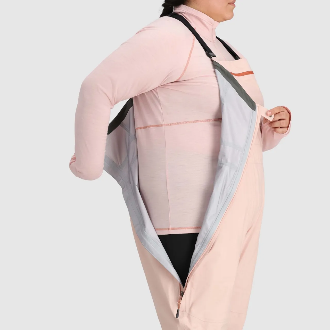 Right Side Zip Extends from Bib Top to Knee for Bathroom Access