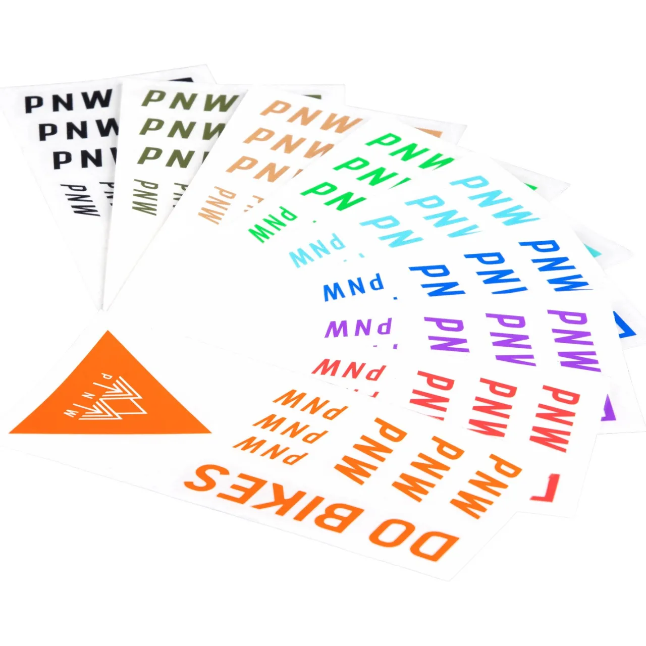 Includes–        3 small PNW, 3 large PNW, 1 DO BIKES, 1 PNW Triangle Logo.