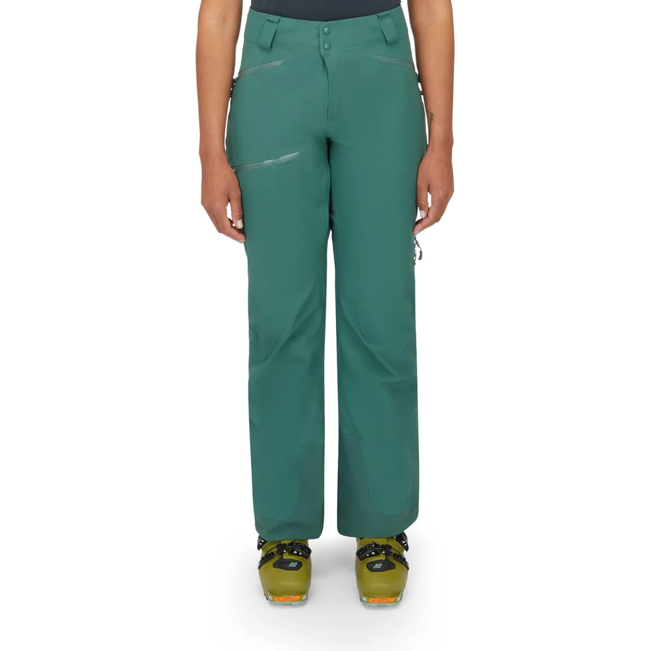 The Rab® Khroma Diffract Pants are the ultimate companion for conquering untamed slopes. These shredding powerhouses blend warmth and mobility with strategically mapped recycled PrimaLoft® Silver Insulation, while supple waterproof and breathable Proflex™ fabric offers hardshell protection with softshell comfort for unrestricted movement. Packed with features like reinforced kick patches, zipped thigh vents, and an articulated fit, these pants are ready for any mountain challenge.