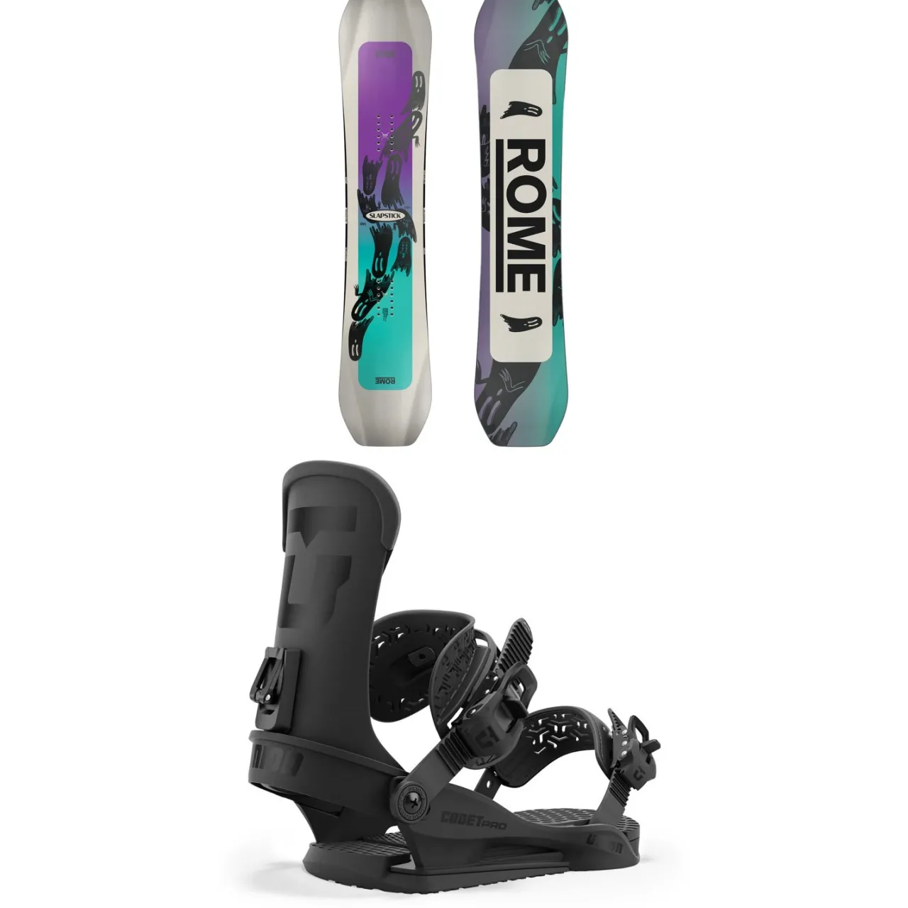Rome Slapstick Snowboard + Union Cadet Pro Snowboard Bindings – Kids’ 2025-Kids Kids Snowboard Packages|Snowboard Packages