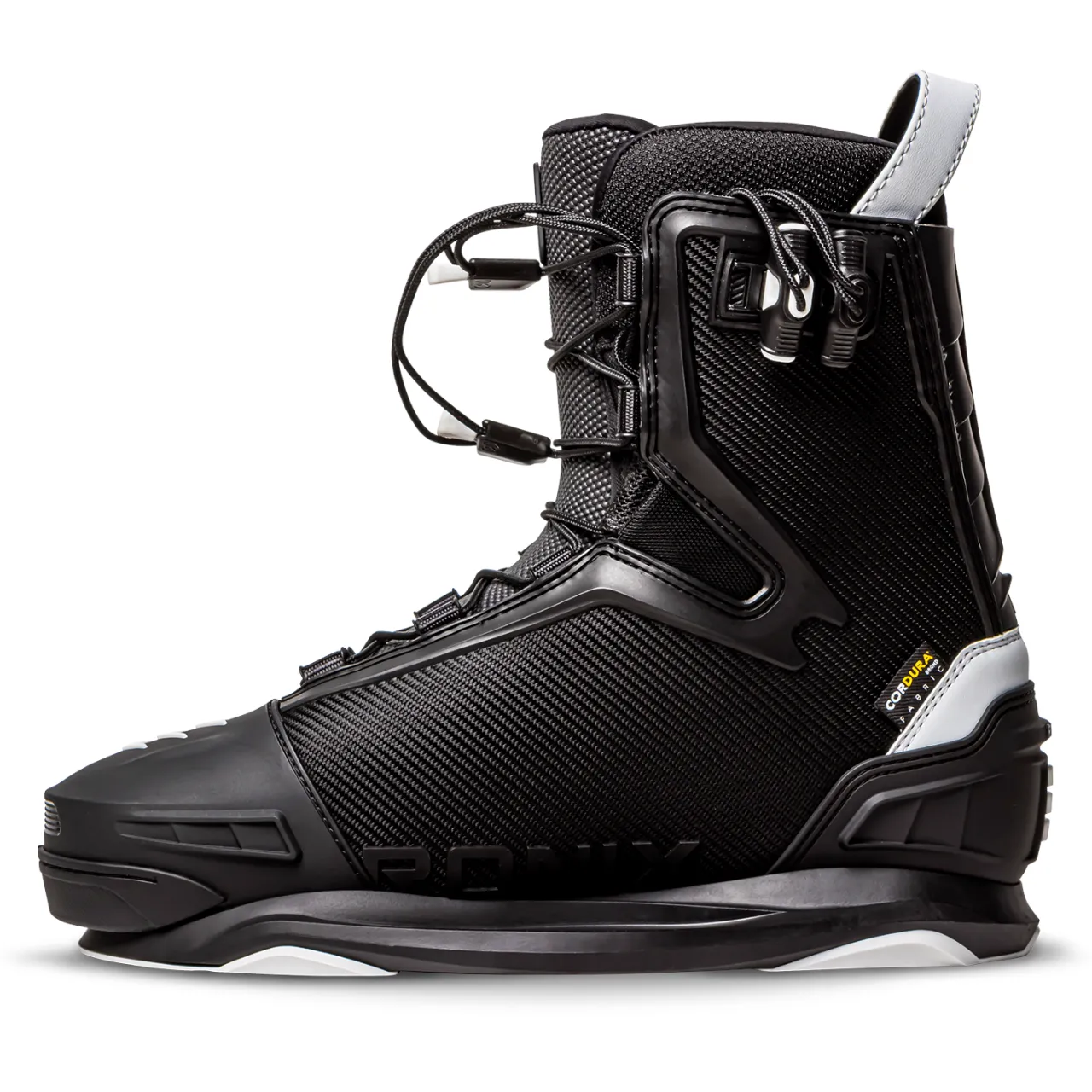 BrainFrame Technology–        A footwear breakthrough in fit, function, and interchangeability, Ronix’s latest hardware platform delivers instant response and redefines high end boot fit. Secures the foot from the bottom up, Instant energy transfer reducing rider fatigue and energy loss, limits distortion in the boot an eliminates much of the stitching and lamination problems of older boots.