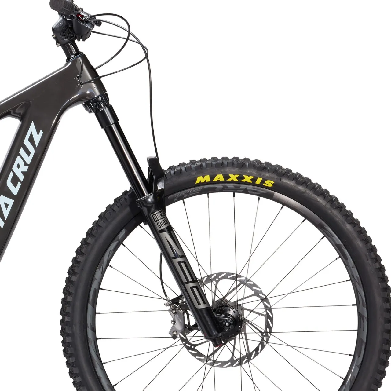 Carbon CC Frame–        Santa Cruz’s highest grade CC-level carbon frame is every bit as stiff and strong as their C-level frame, but weighs about 280 grams less, due to the use of lighter, stronger, and more expensive carbon fiber. Santa Cruz is also able to truly integrate shock mounts, pivot mounts, dropouts and disc brake tabs into the structure, using all uni-directional carbon plies. The shock mount isn’t merely riveted or bonded on after curing, but is an integrated part of the fiber lay-up. This makes Santa Cruz’s carbon frames incredibly strong and able to absorb impact better than any other frame they’ve tested.
