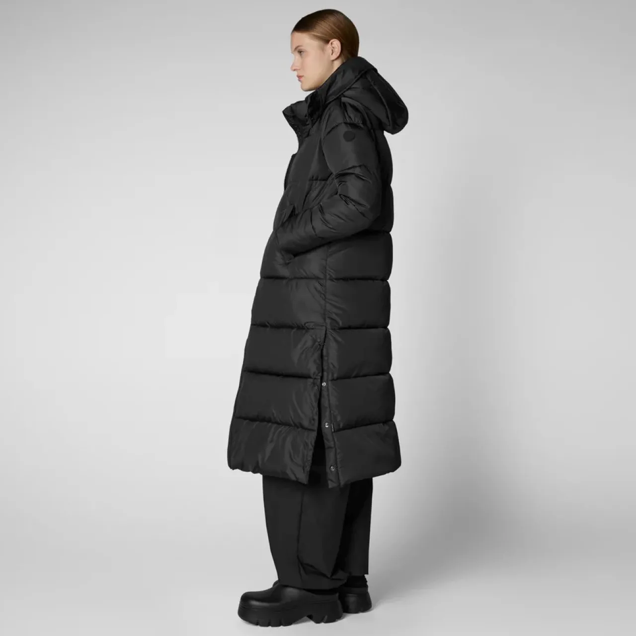 The Save the Duck Colette Jacket has a long, sleek silhouette that protects you from the cold and protects ducks from the fashion industry. It uses animal-free down alternative for warmth and features a practical detachable hood, zipped front, and side slit pockets.