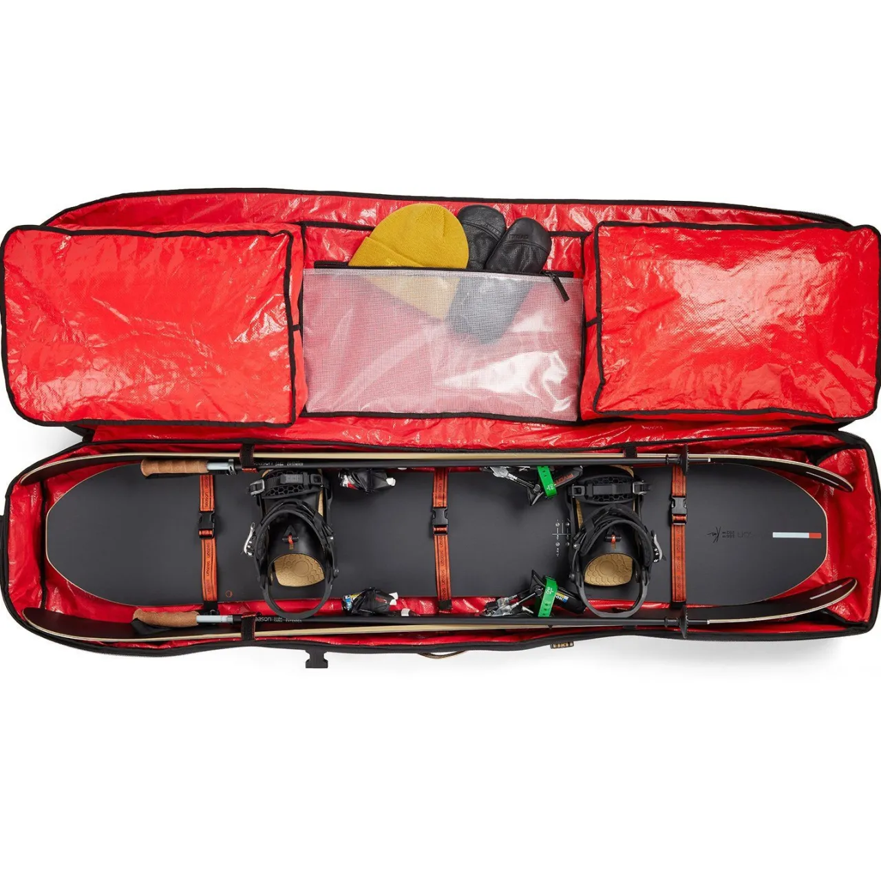 - Â Â Â Capacity: Â Â Â 2 Pairs of Skis or 2 Snowboards with Bindings Mounted + 2 Pairs of Boots + Outerwear + Poles + Accesories