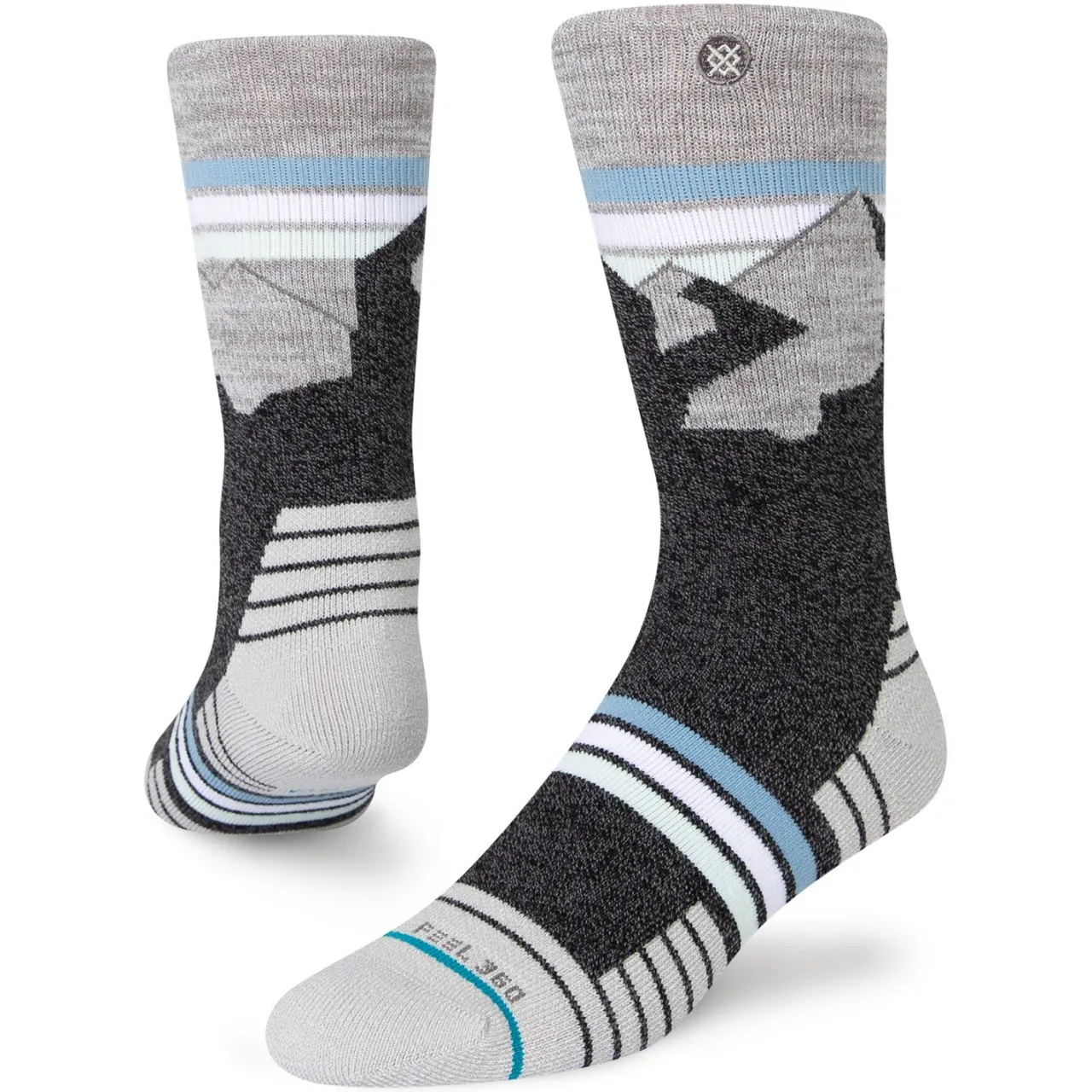 FEEL360– Stance FEEL360 is a fiber treatment that reacts to your body’s temperature for the ultimate in high-performance comfort. By infusing premium twisted yarns with the proprietary treatment, FEEL360 eliminates odor-causing bacteria as it wicks away moisture to keep you feeling fresh and dry well past the finish line.