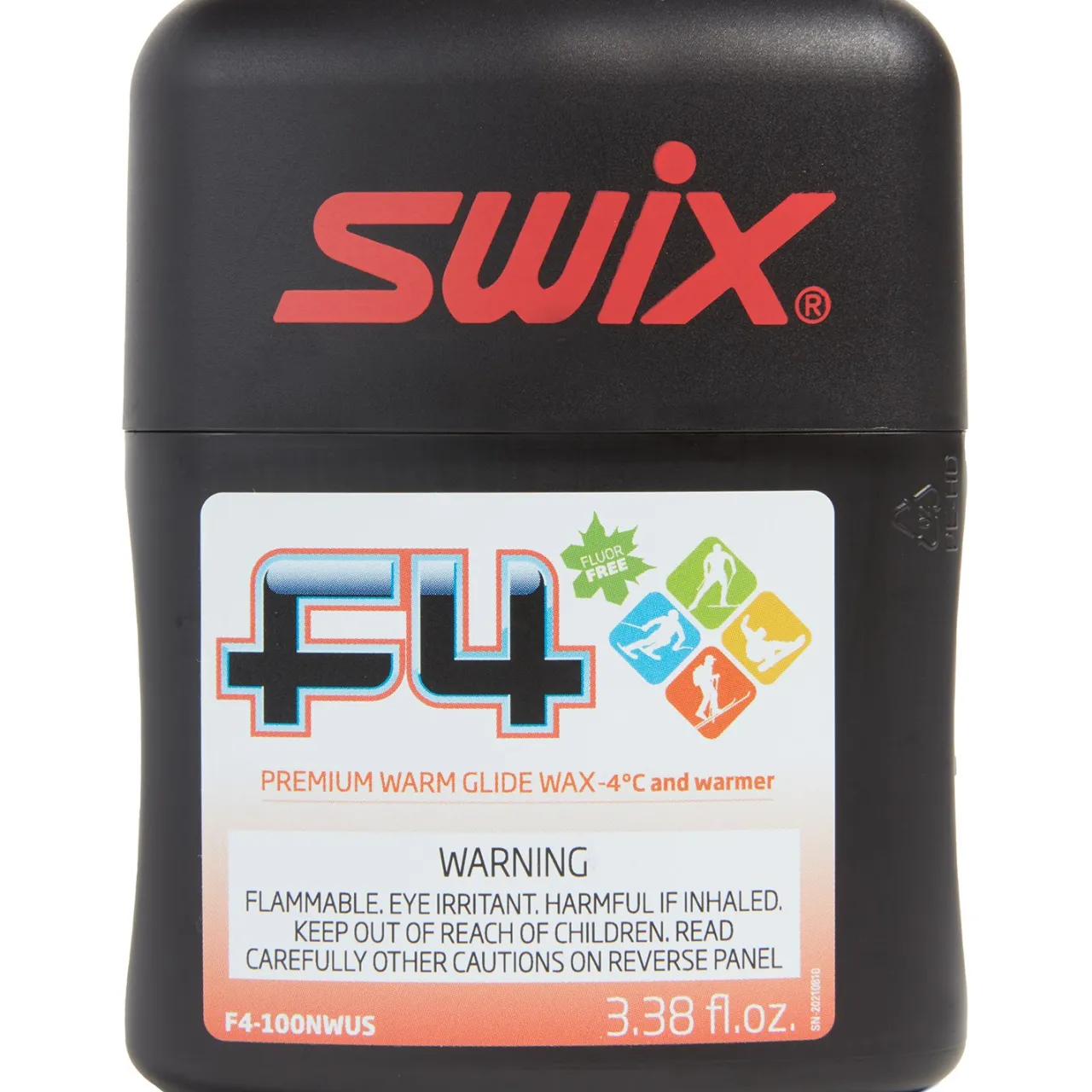 A special formula F4 for the Northwest United States, SWIX F4-100NWUS Glidewax Liquid Warm is designed for temps above 4ËšC (25ËšF). Just apply the liquid to dry bases with the built-in applicator, let dry, and polish.