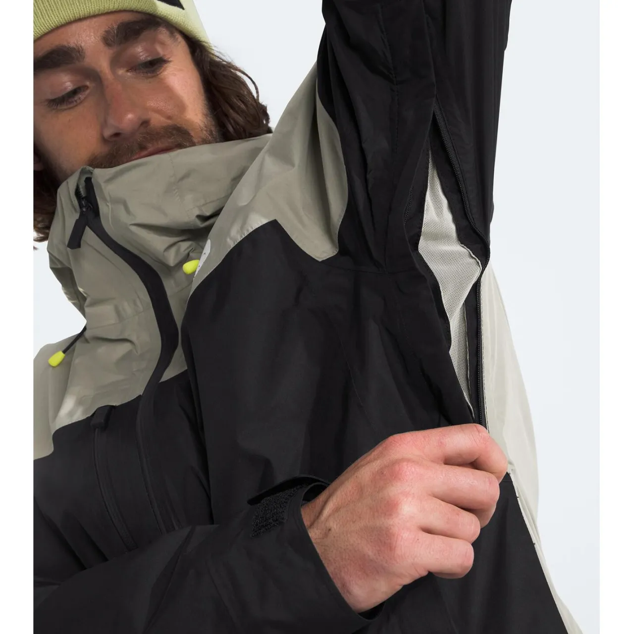 Attached, Helmet-Compatible Hood with Riveted Cord Lock Adjustment System