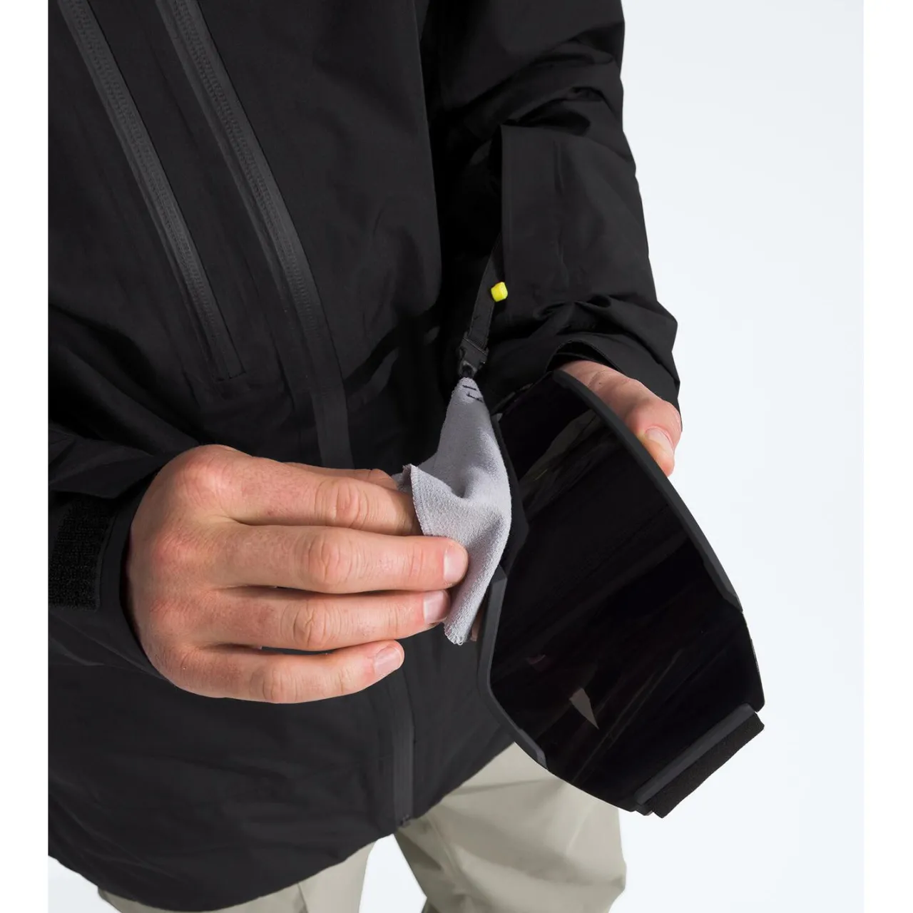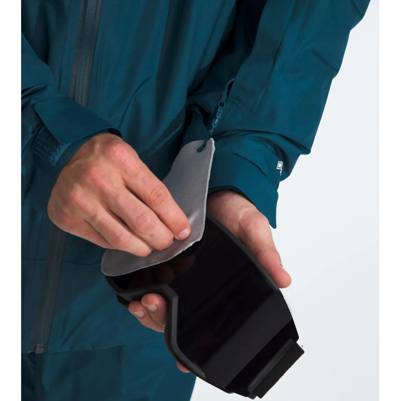 Covered, Secure Zip Wrist Pocket with Goggle Wipe