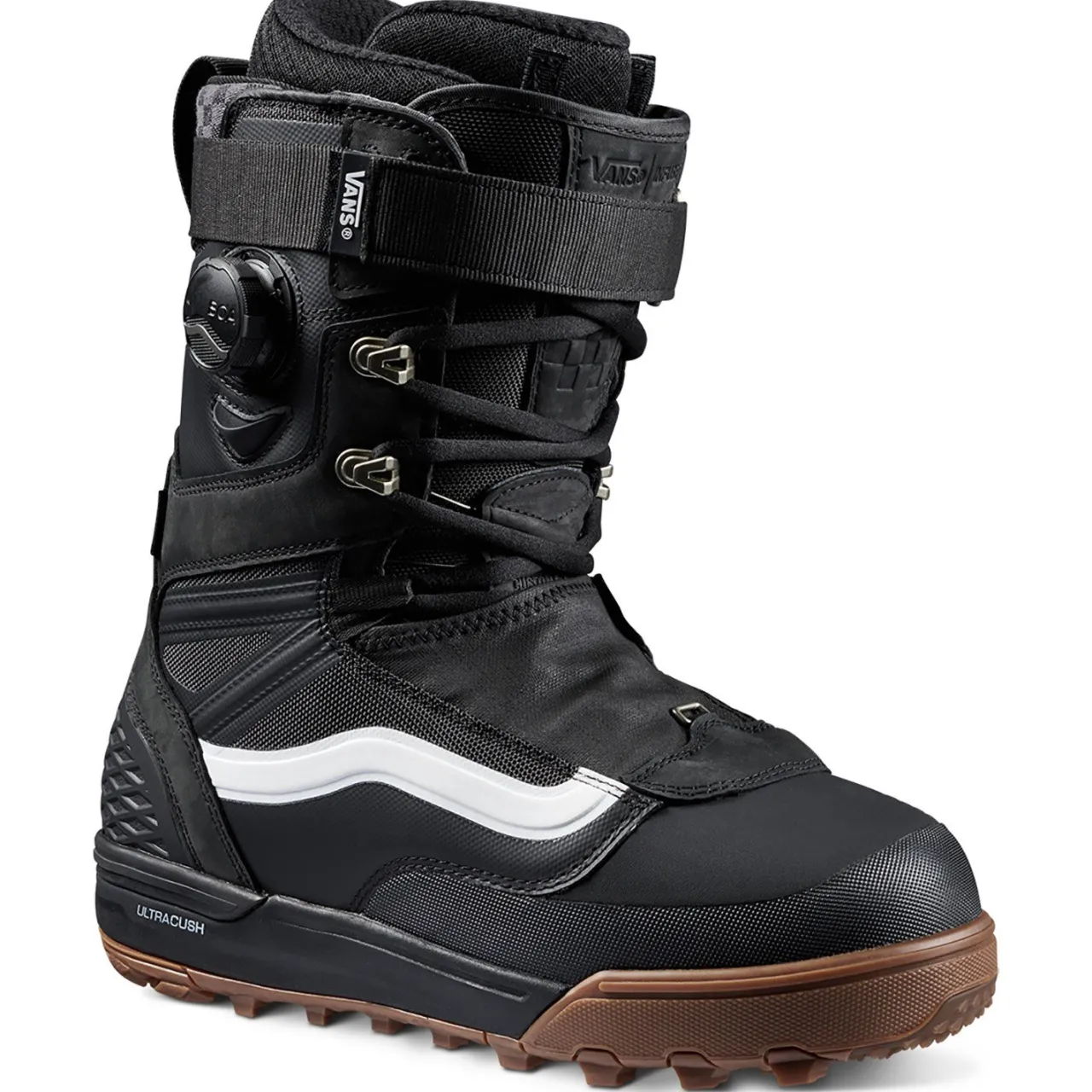 One of the most versatile boots in the Vans lineup, the Vans Infuse Snowboard Boots come loaded with top shelf V3 features like a TNF Flashdry™ liner, V3 Popcush footbed, and super grippy Snow Waffle outsole. Traditional laces with a BOA®-controlled V3 harness provide ultimate adjustability and awesome heel retention, and a waterproof zipper shroud helps prevent water and snow ingress for drier feet.