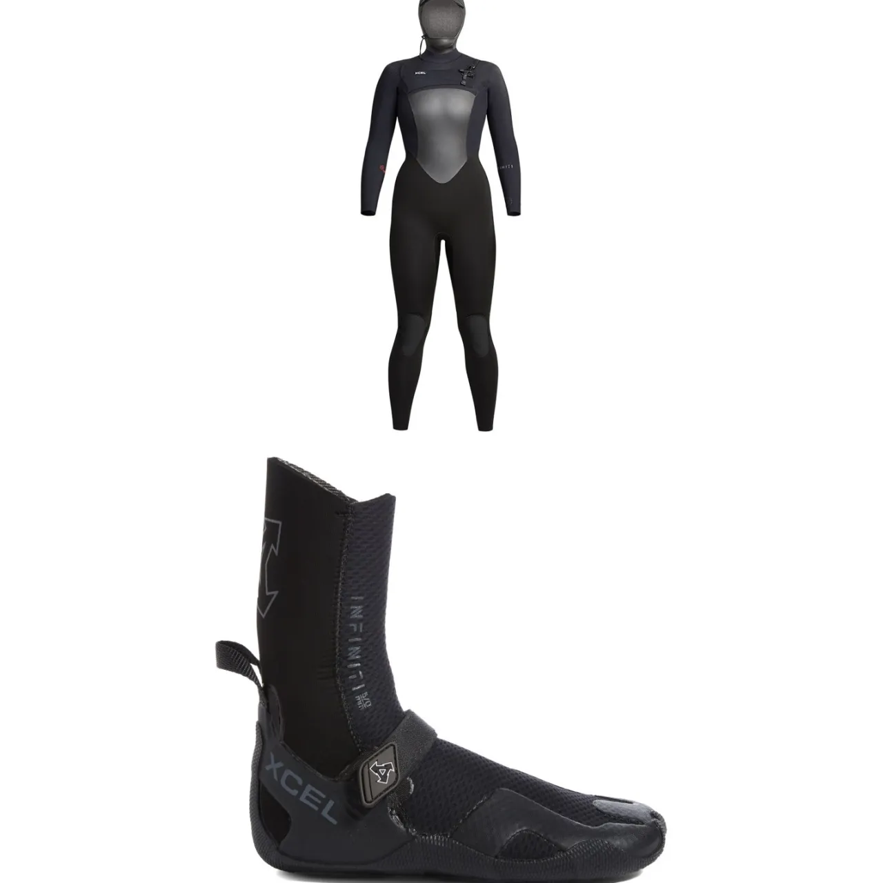 XCEL 5/4 Infiniti Hooded Wetsuit – Women’s + 5mm Infiniti Round Toe Wetsuit Boots- Wetsuit Kits